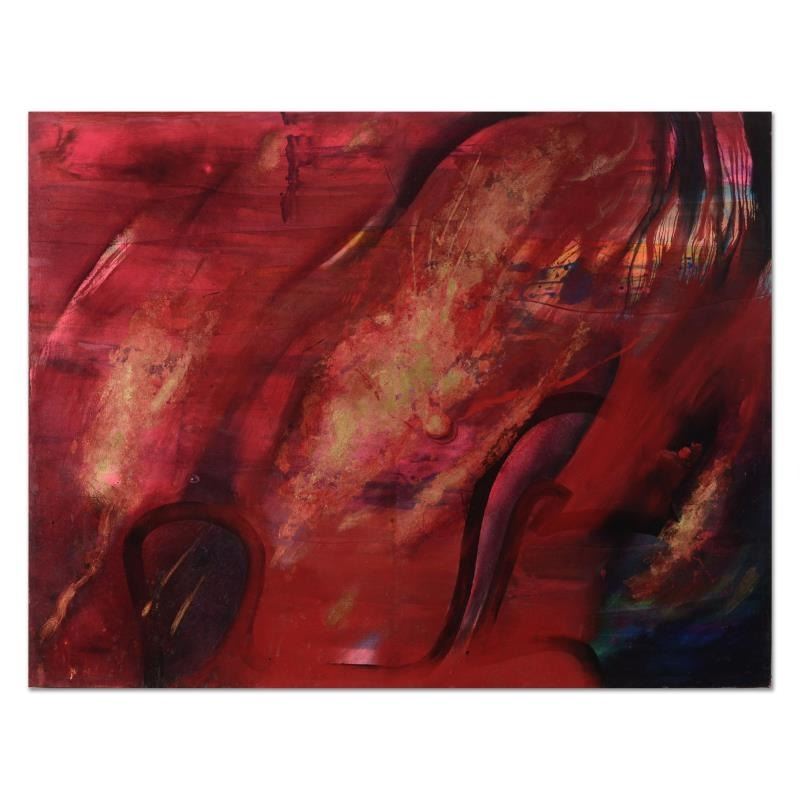 This is an original oil painting with hand laid gold leaf on canvas by Martin Katon, hand signed by the artist. This piece comes gallery wrapped. Includes Certificate of Authenticity. Measures approx. 42" x 54" (image). There is minor wear on the corners and edges.