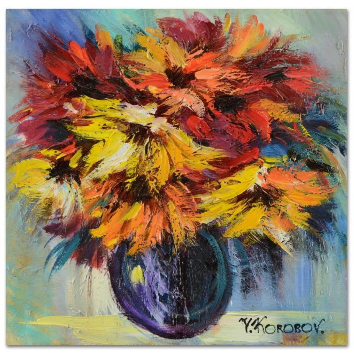 This is an original acrylic painting on stretched canvas by Yana Korobov, hand signed by the artist. Includes Letter of Authenticity. Measures approx. 16" x 16" (image).