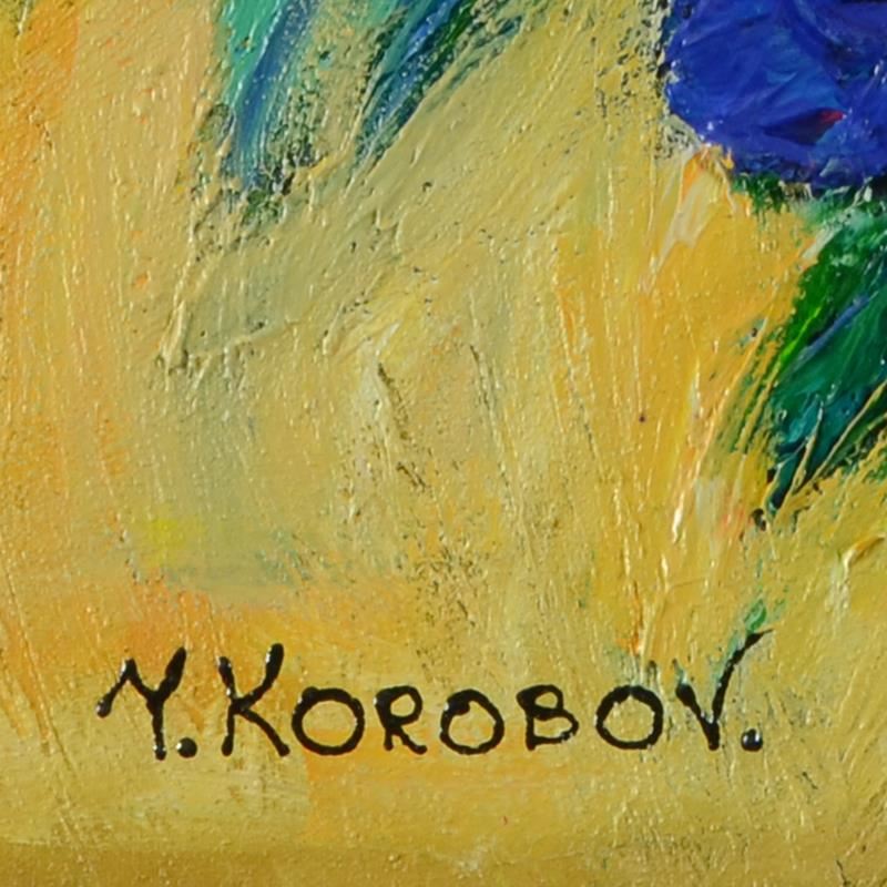 This is an original acrylic painting on canvas by Yana Korobov, hand signed by the artist. Includes Letter of Authenticity. Measures approx. 30" x 30" (image).