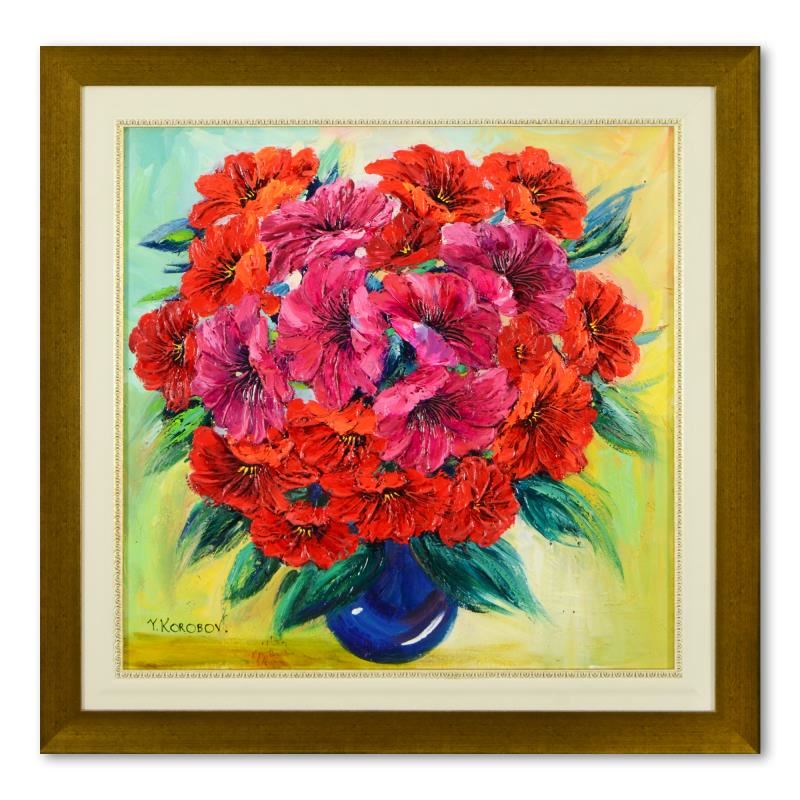 This is an original acrylic painting on canvas by Yana Korobov, hand signed by the artist. This piece comes framed. Includes Letter of Authenticity. Measures approx. 39" x 39" (frame), 30" x 30" (image).