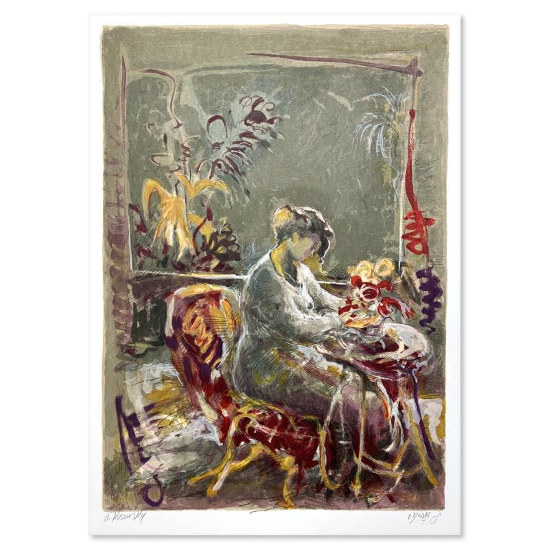 This is a limited edition on paper by Avinoam Kosowsky. The piece comes hand signed by the artist, numbered, and with a letter of authenticity. Measures approximately 19" x 27".