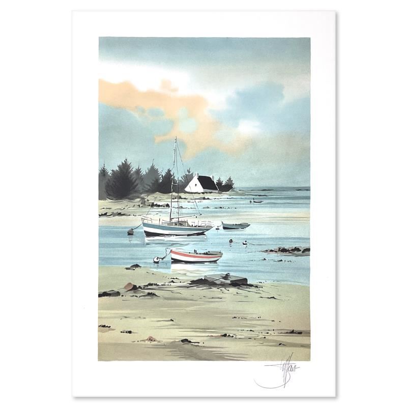 This is a limited edition lithograph on paper by Stephane Lauro, numbered and hand signed by the artist. Includes Letter of Authenticity. Measures approx. 15" x 22" (border), 10.5" x 16" (image).