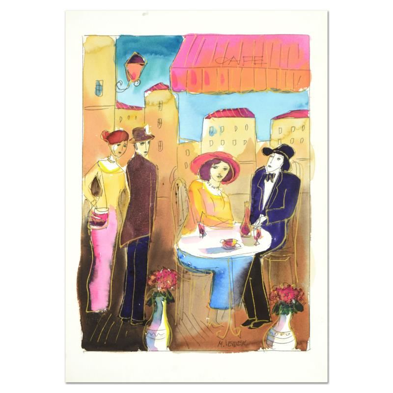 This is an original watercolor painting on paper by Moshe Leider, hand signed by the artist. Includes Certificate of Authenticity. Measures approx. 10" x 14.5" (with border), 8.5" x 12" (image).