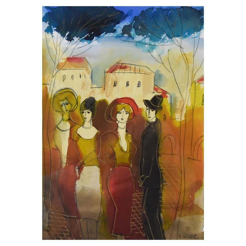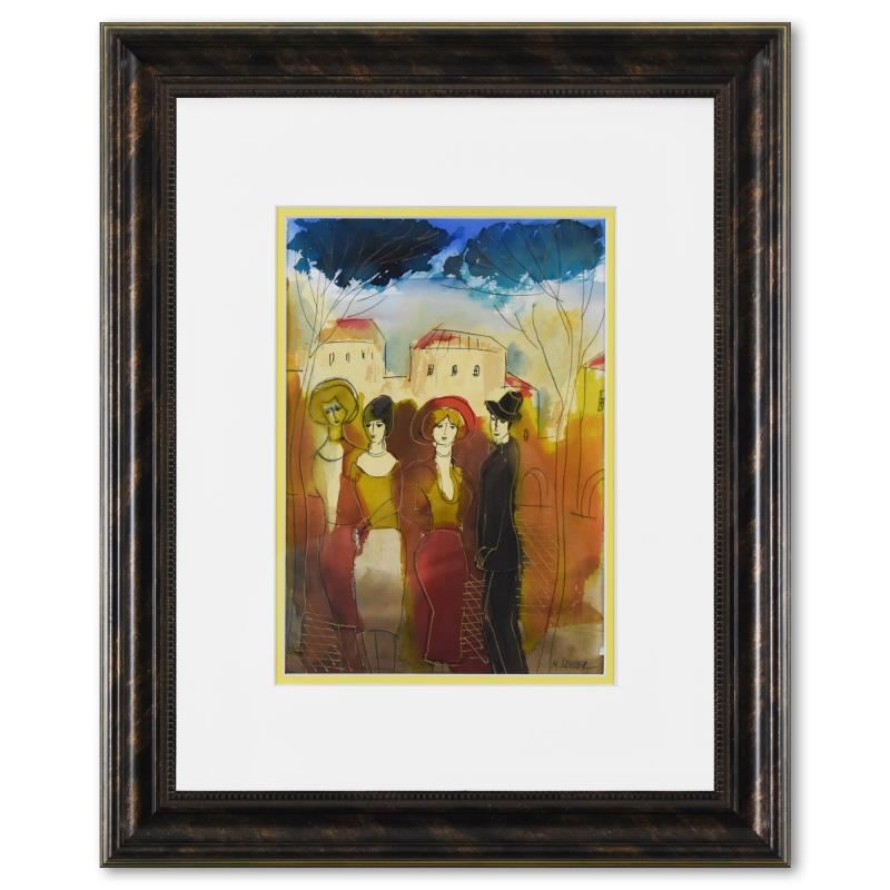 This is an original mixed media watercolor painting on paper by Moshe Leider, hand signed by the artist. This piece comes custom framed. Includes Letter of Authenticity. Measures approx. 17" x 21" (frame), 8" x 11.5" (image).