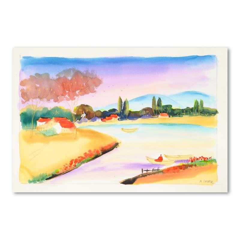 This is an original watercolor painting on paper by Moshe Leider, hand signed by the artist. Includes Letter of Authenticity. Measures approx. 22" x 15" (border), 19" x 12" (image).
