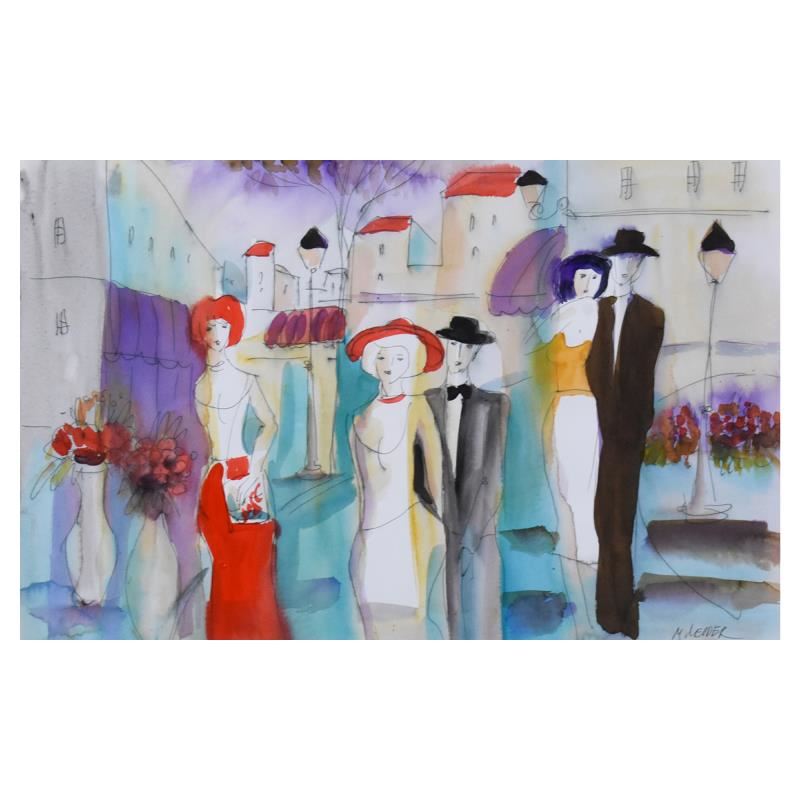This is an original mixed media watercolor painting on paper by Moshe Leider, hand signed by the artist. This piece comes custom framed. Includes Letter of Authenticity. Measures approx. 29.5" x 22.5" (frame), 19" x 12" (image).