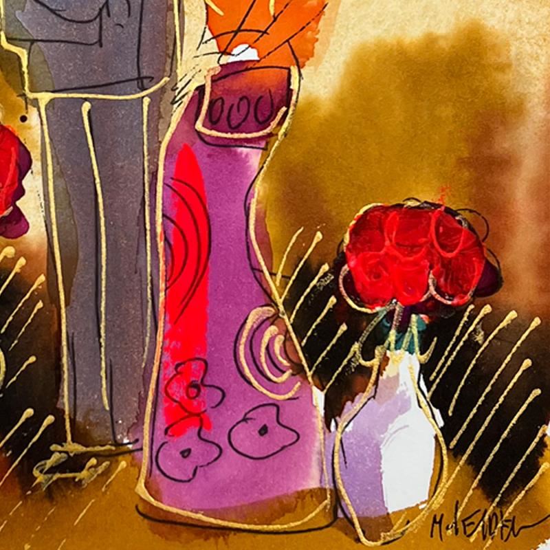 This is an original mixed media watercolor painting on paper by Moshe Leider. Hand signed by the artist, this piece comes custom framed and includes a Letter of Authenticity. Measures approximately 15" x 13.5" (frame), 8" x 6.5" (image).