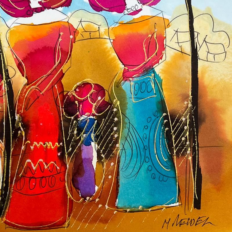 This is an original mixed media watercolor painting on paper by Moshe Leider. Hand signed by the artist, this piece comes custom framed and includes a Letter of Authenticity. Measures approximately 15" x 13.5" (frame), 8" x 6.5" (image).