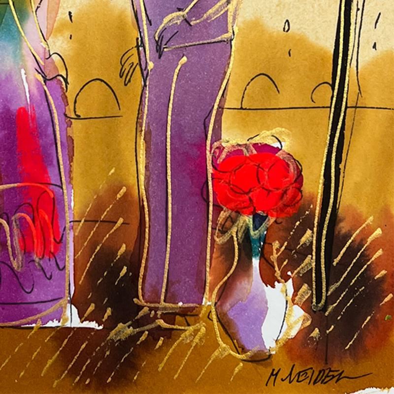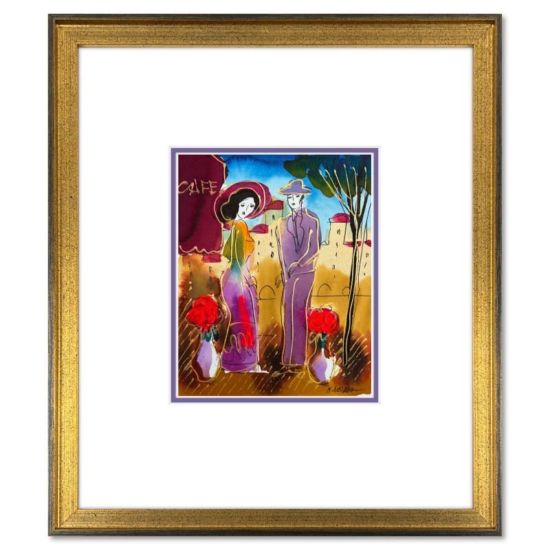 This is an original mixed media watercolor painting on paper by Moshe Leider. Hand signed by the artist, this piece comes custom framed and includes a Letter of Authenticity. Measures approximately 15" x 13.5" (frame), 8" x 6.5" (image).
