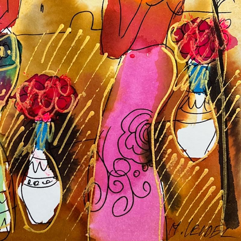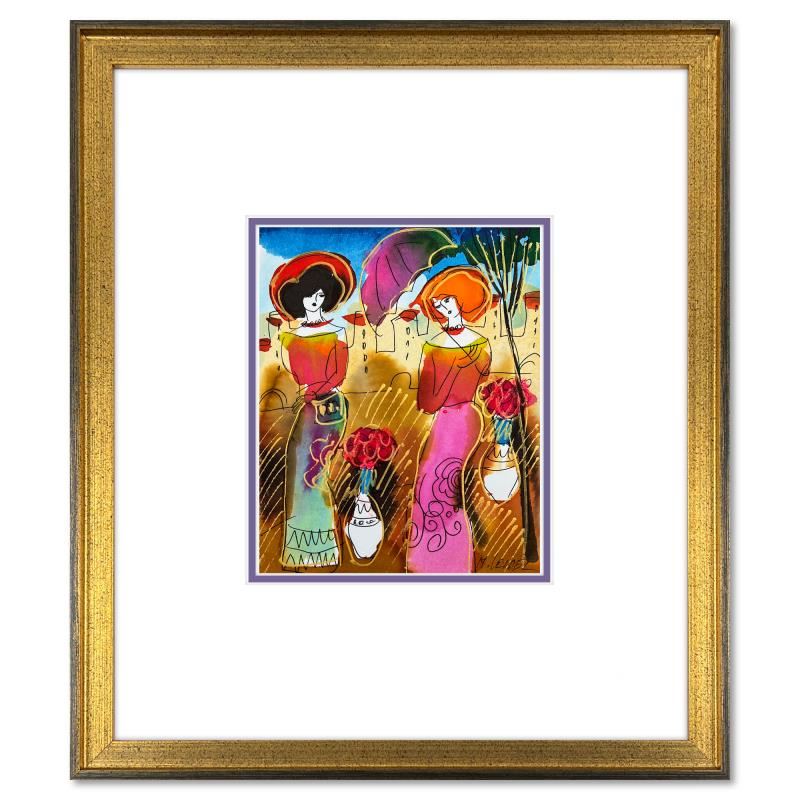 This is an original mixed media watercolor painting on paper by Moshe Leider. Hand signed by the artist, this piece comes custom framed and includes a Letter of Authenticity. Measures approximately 15" x 13.5" (frame), 8" x 6.5" (image).