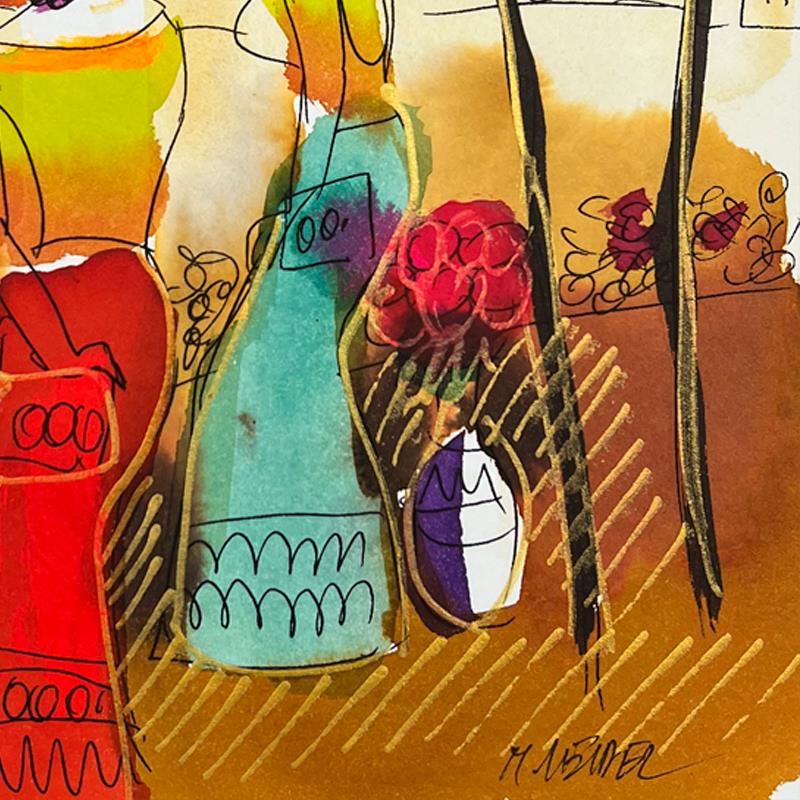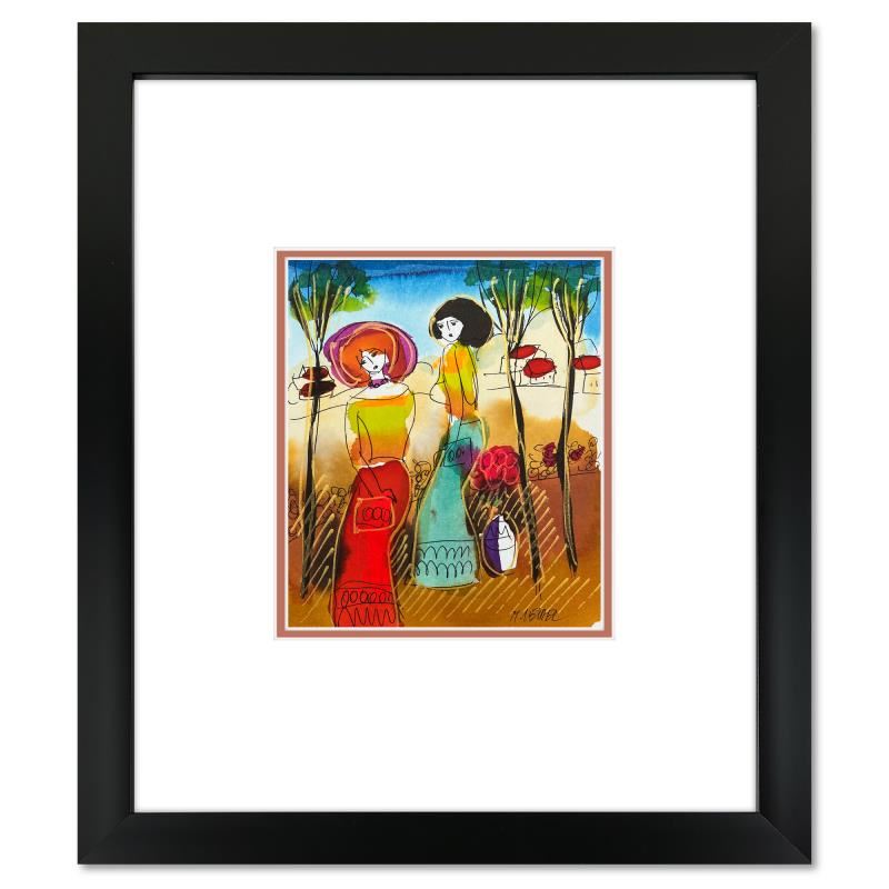 This is an original mixed media watercolor painting on paper by Moshe Leider. Hand signed by the artist, this piece comes custom framed and includes a Letter of Authenticity. Measures approximately 15" x 13.5" (frame), 8" x 6.5" (image).