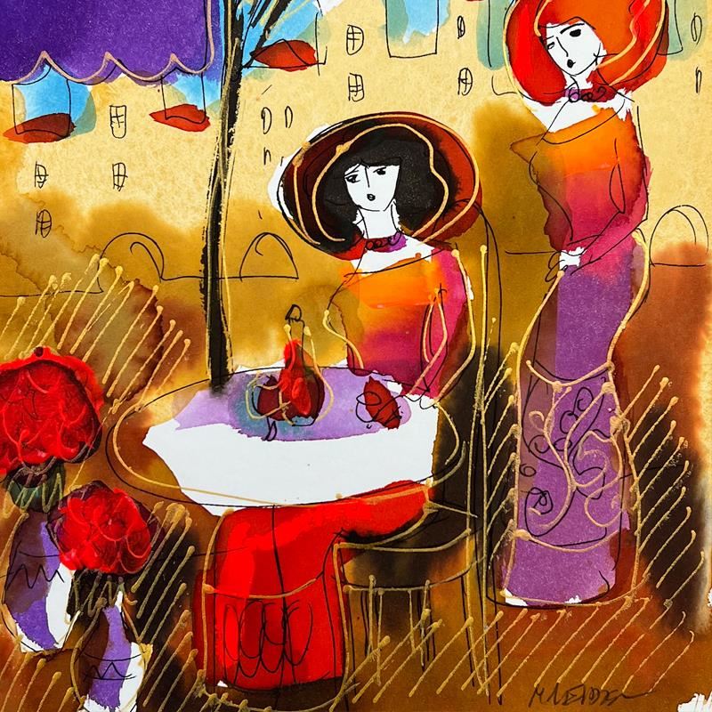 This is an original mixed media watercolor painting on paper by Moshe Leider. Hand signed by the artist, this piece comes custom framed and includes a Letter of Authenticity. Measures approximately 16" x 15" (frame), 9" x 8" (image).