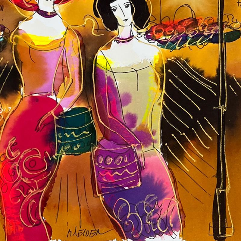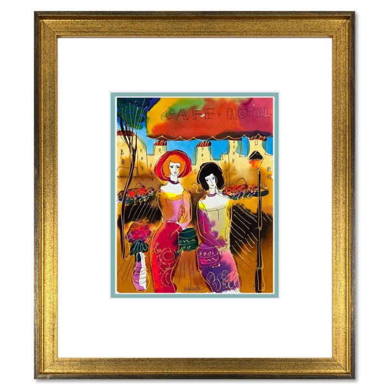 This is an original mixed media watercolor painting on paper by Moshe Leider. Hand signed by the artist, this piece comes custom framed and includes a Letter of Authenticity. Measures approximately 18.5" x 16" (frame), 11" x 8.5" (image).