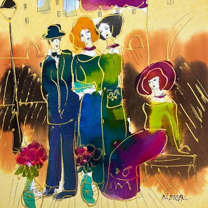 This is an original mixed media watercolor painting on paper by Moshe Leider. Hand signed by the artist, this piece comes custom framed and includes a Letter of Authenticity. Measures approximately 17" x 15" (frame), 10" x 8" (image).