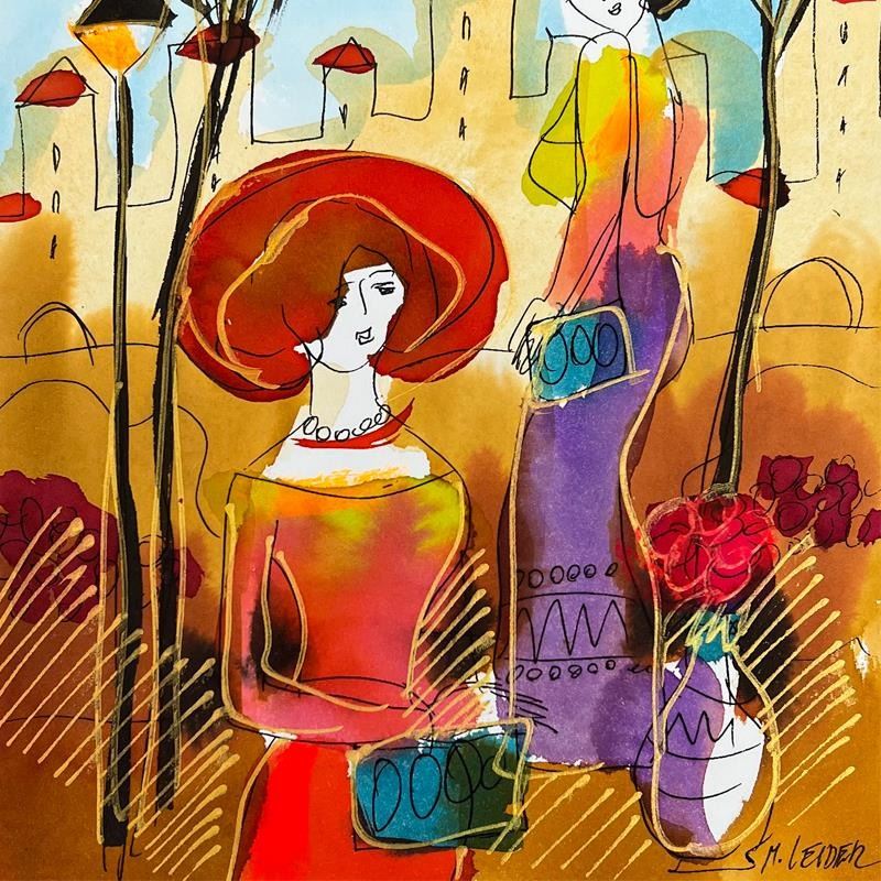 Untitled by Leider Original. Please see photos and description for all available information. This is an original mixed media watercolor painting on paper by Moshe Leider. Hand signed by the artist, this piece comes custom framed and includes a Letter of Authenticity. Measures approximately 16" x 15" (frame), 9" x 8" (image).