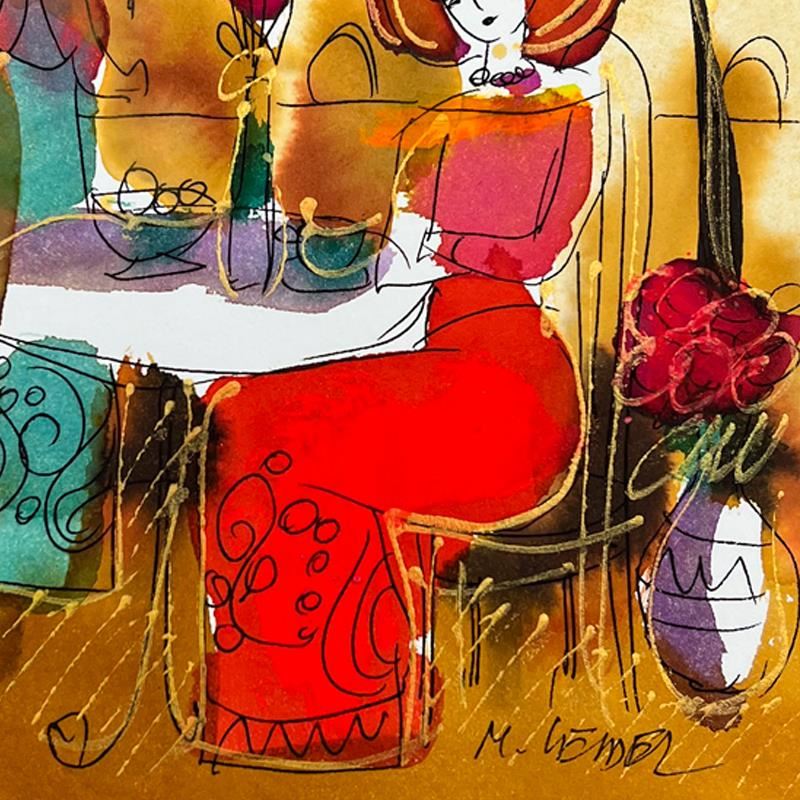 Untitled by Leider Original. Please see photos and description for all available information. This is an original mixed media watercolor painting on paper by Moshe Leider. Hand signed by the artist, this piece comes custom framed and includes a Letter of Authenticity. Measures approximately 15" x 13.5" (frame), 8" x 6.5" (image).