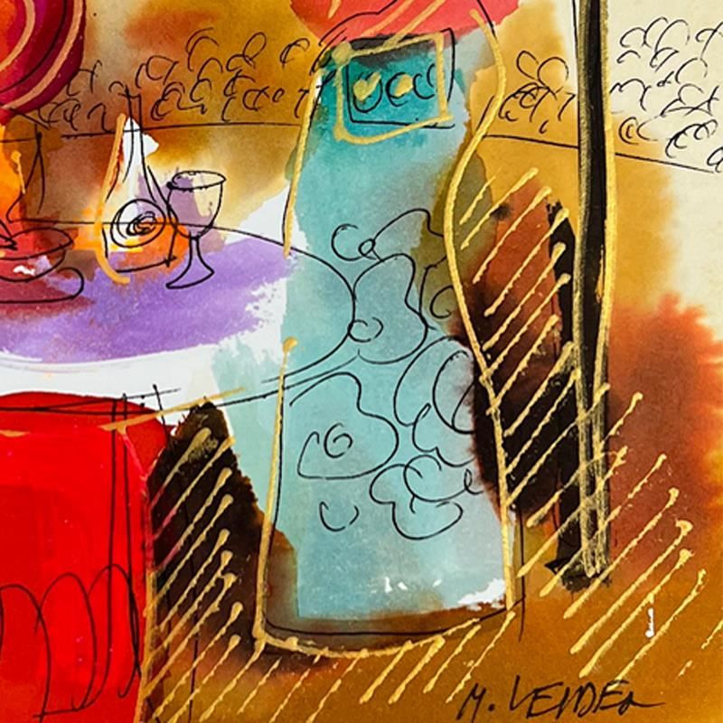 Untitled by Leider Original. Please see photos and description for all available information. This is an original mixed media watercolor painting on paper by Moshe Leider. Hand signed by the artist, this piece comes custom framed and includes a Letter of Authenticity. Measures approximately 15" x 13.5" (frame), 8" x 6.5" (image).