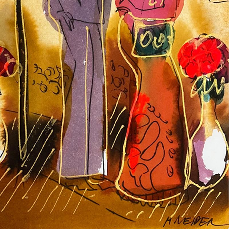 Untitled by Leider Original. Please see photos and description for all available information. This is an original mixed media watercolor painting on paper by Moshe Leider. Hand signed by the artist, this piece comes custom framed and includes a Letter of Authenticity. Measures approximately 15" x 13.5" (frame), 8" x 6.5" (image).