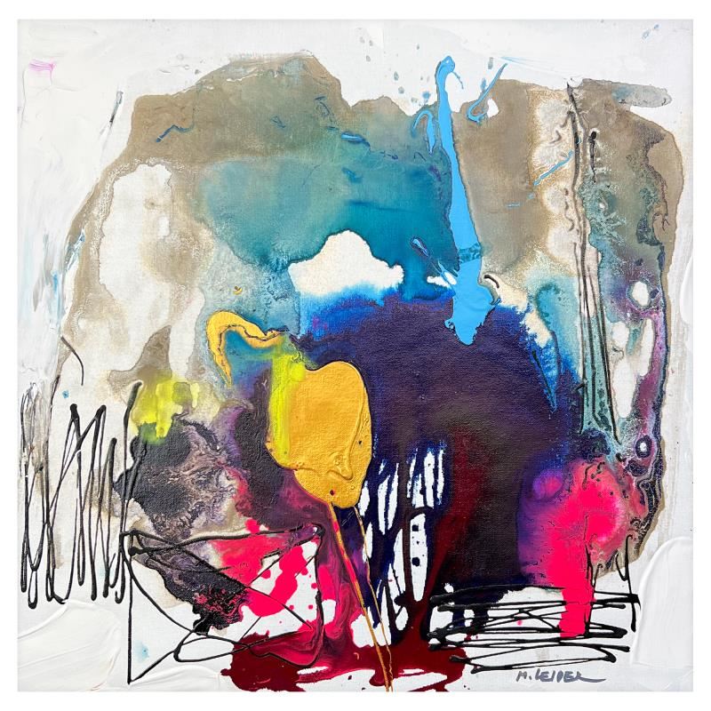 This is an original painting, acrylic on canvas by Moshe Leider. The piece is hand signed by the artist and includes a letter of authenticity. Measures approximately 15.5" x 15.5" (image).