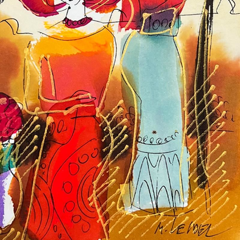 This is an original mixed media watercolor painting on paper by Moshe Leider. Hand signed by the artist, this piece comes custom framed and includes a Letter of Authenticity. Measures approximately 15" x 13.5" (frame), 8" x 6.5" (image).