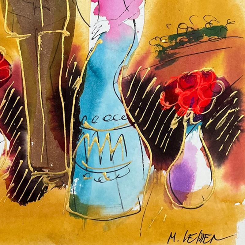 This is an original mixed media watercolor painting on paper by Moshe Leider. Hand signed by the artist, this piece comes custom framed and includes a Letter of Authenticity. Measures approximately 15" x 13.5" (frame), 8" x 6.5" (image).