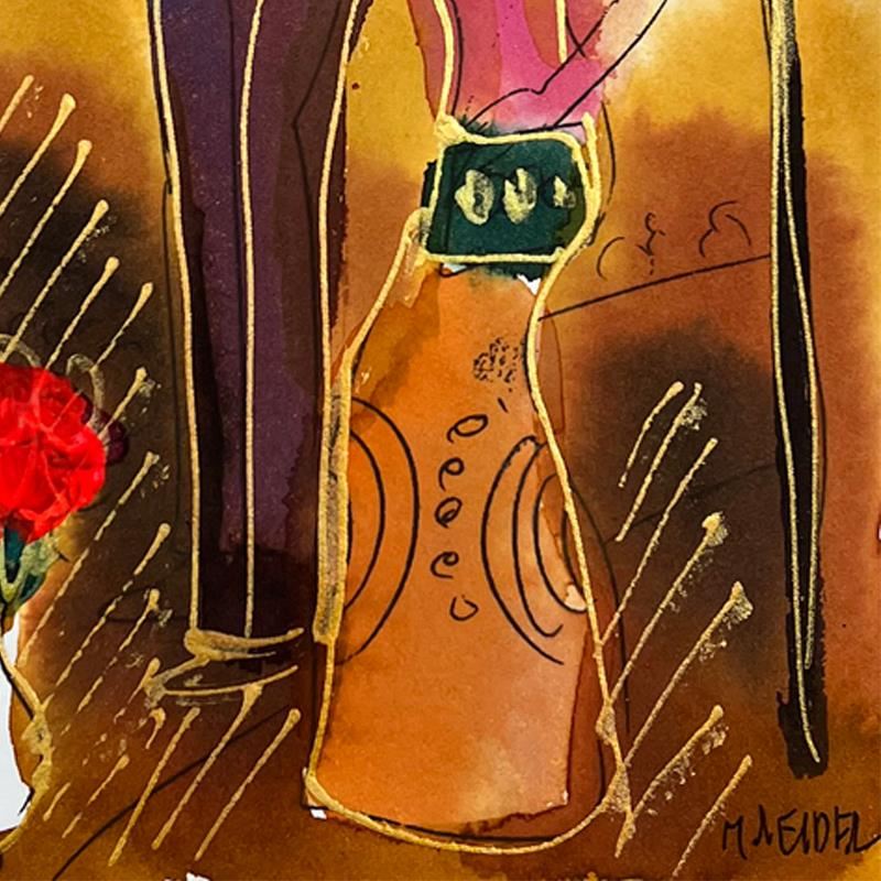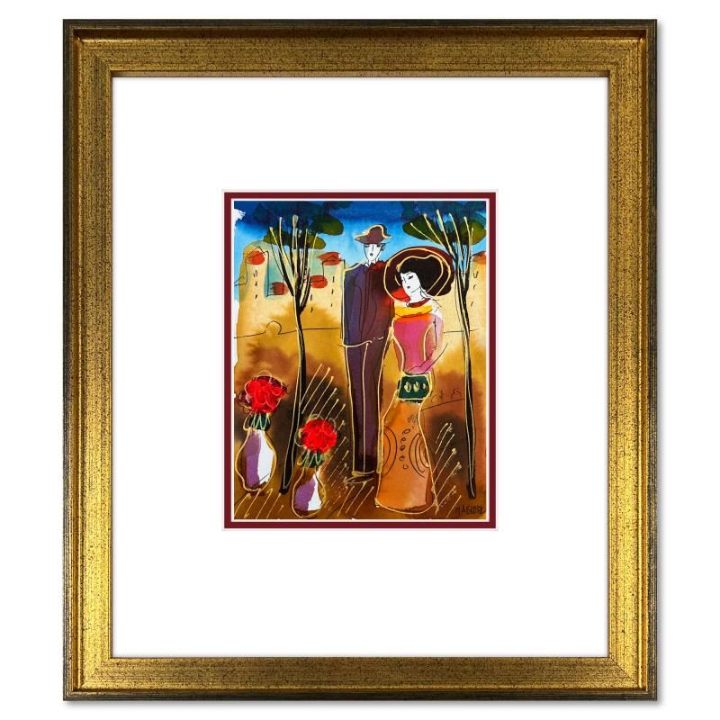 This is an original mixed media watercolor painting on paper by Moshe Leider. Hand signed by the artist, this piece comes custom framed and includes a Letter of Authenticity. Measures approximately 15" x 13.5" (frame), 8" x 6.5" (image).
