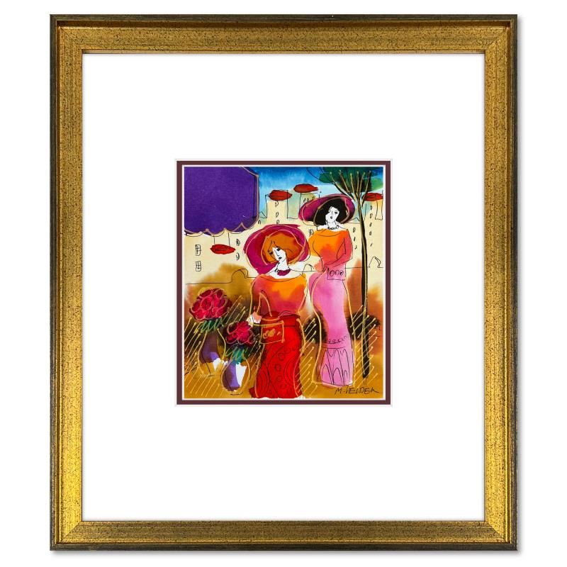 This is an original mixed media watercolor painting on paper by Moshe Leider. Hand signed by the artist, this piece comes custom framed and includes a Letter of Authenticity. Measures approximately 15" x 13.5" (frame), 8" x 6.5" (image).