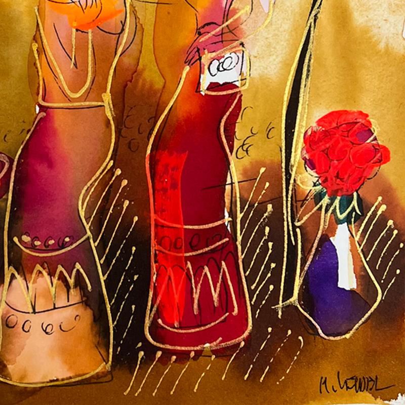 This is an original mixed media watercolor painting on paper by Moshe Leider. Hand signed by the artist, this piece comes custom framed and includes a Letter of Authenticity. Measures approximately 15" x 13.5" (frame), 8" x 6.5" (image).