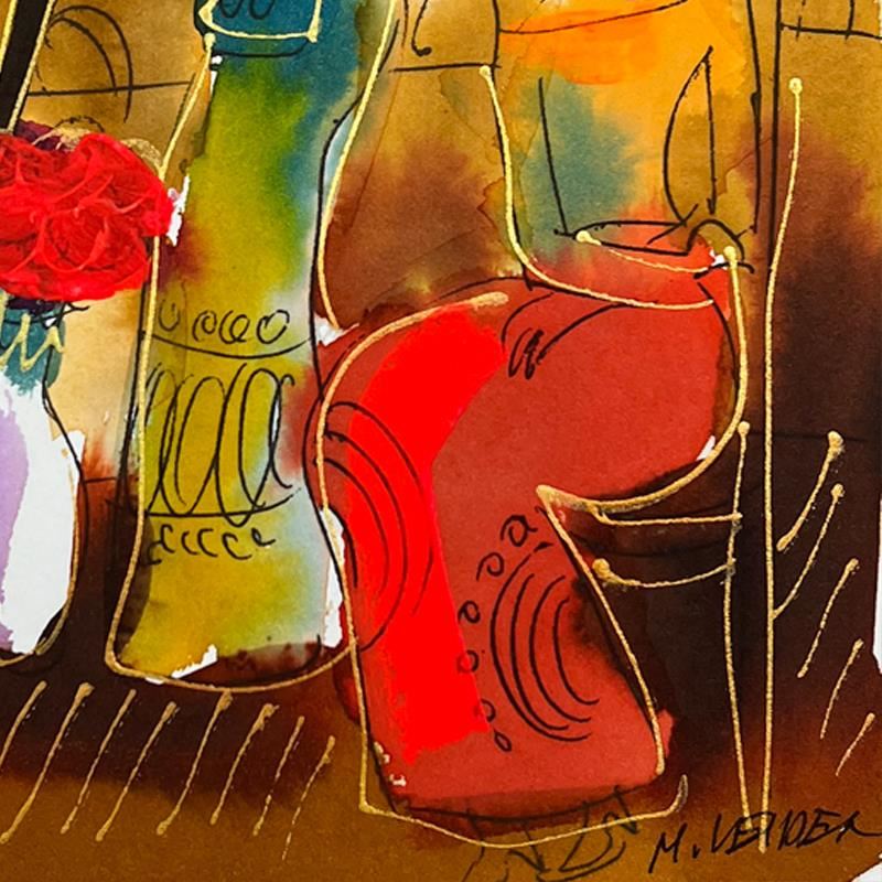 This is an original mixed media watercolor painting on paper by Moshe Leider. Hand signed by the artist, this piece comes custom framed and includes a Letter of Authenticity. Measures approximately 15" x 13.5" (frame), 8" x 6.5" (image).
