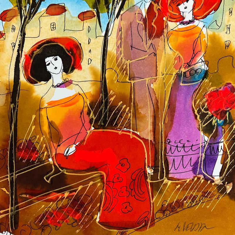 This is an original mixed media watercolor painting on paper by Moshe Leider. Hand signed by the artist, this piece comes custom framed and includes a Letter of Authenticity. Measures approximately 16" x 15" (frame), 9" x 8" (image).