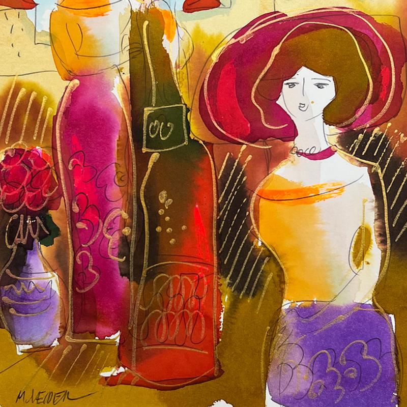This is an original mixed media watercolor painting on paper by Moshe Leider. Hand signed by the artist, this piece comes custom framed and includes a Letter of Authenticity. Measures approximately 16" x 15" (frame), 9" x 8" (image).