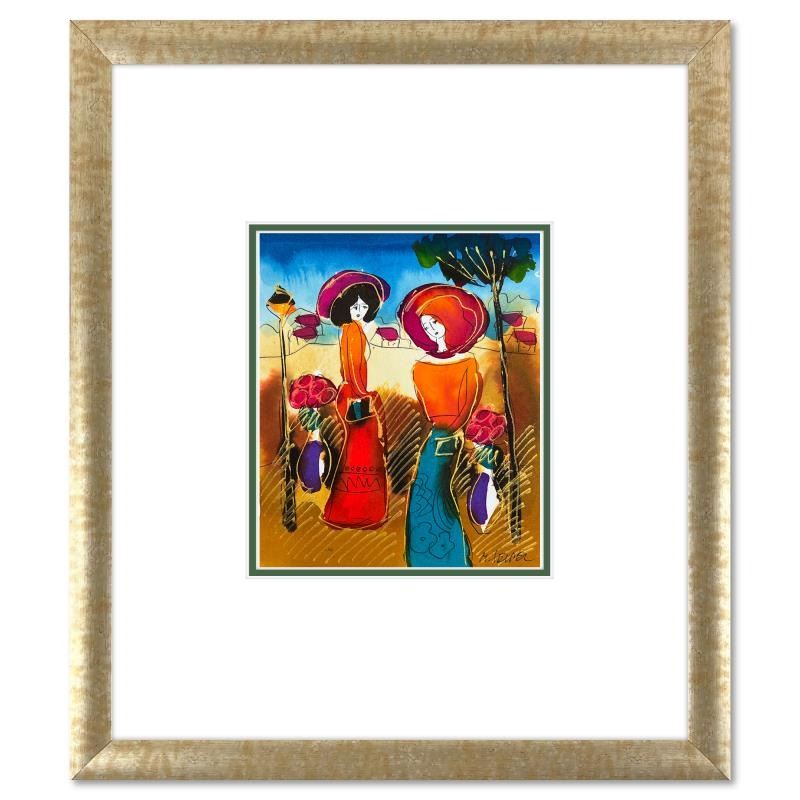 This is an original mixed media watercolor painting on paper by Moshe Leider. Hand signed by the artist, this piece comes custom framed and includes a Letter of Authenticity. Measures approximately 15" x 13.5" (frame), 8" x 6.5" (image).