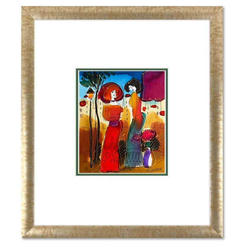 This is an original mixed media watercolor painting on paper by Moshe Leider. Hand signed by the artist, this piece comes custom framed and includes a Letter of Authenticity. Measures approximately 15" x 13.5" (frame), 8" x 6.5" (image).
