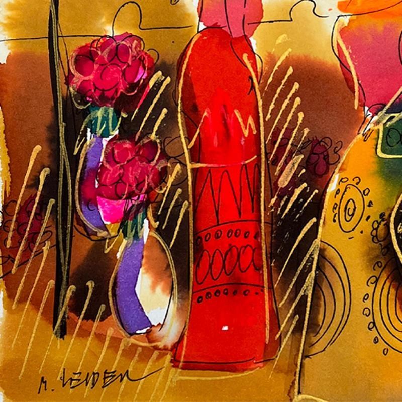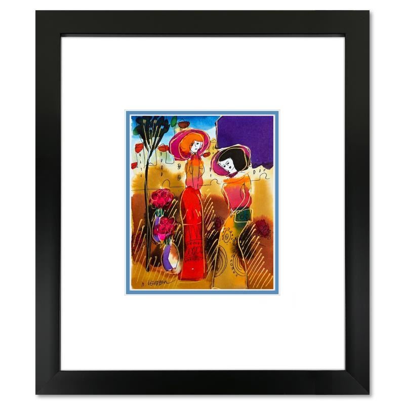 This is an original mixed media watercolor painting on paper by Moshe Leider. Hand signed by the artist, this piece comes custom framed and includes a Letter of Authenticity. Measures approximately 15" x 13.5" (frame), 8" x 6.5" (image).