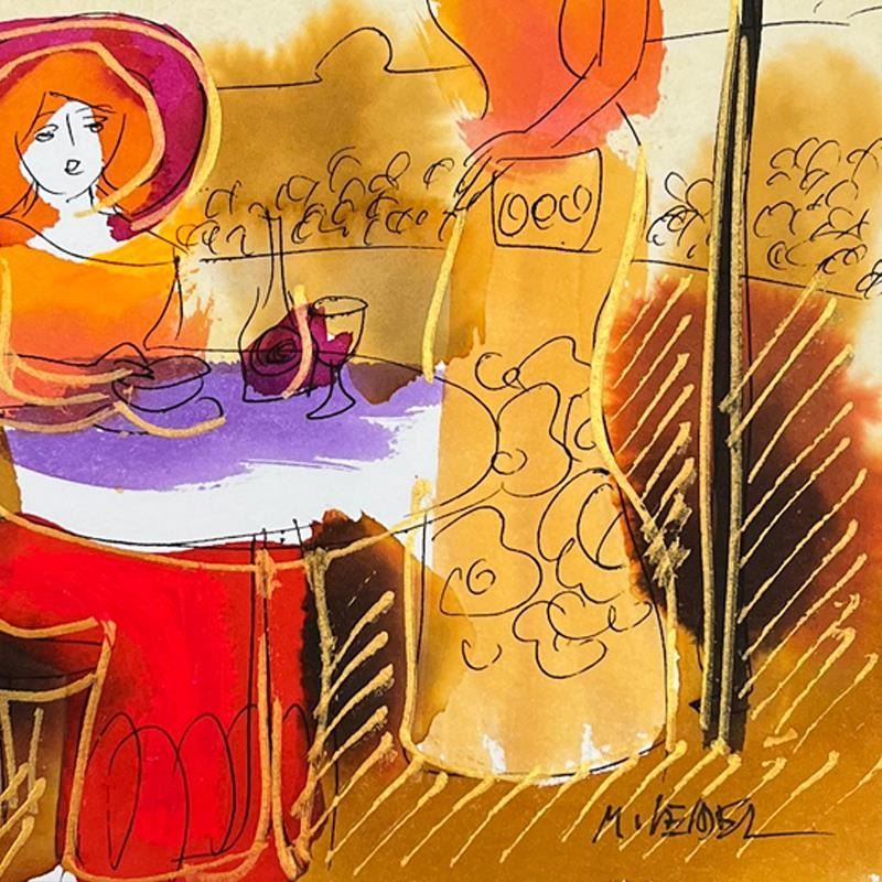 This is an original mixed media watercolor painting on paper by Moshe Leider. Hand signed by the artist, this piece comes custom framed and includes a Letter of Authenticity. Measures approximately 15" x 13.5" (frame), 8" x 6.5" (image).