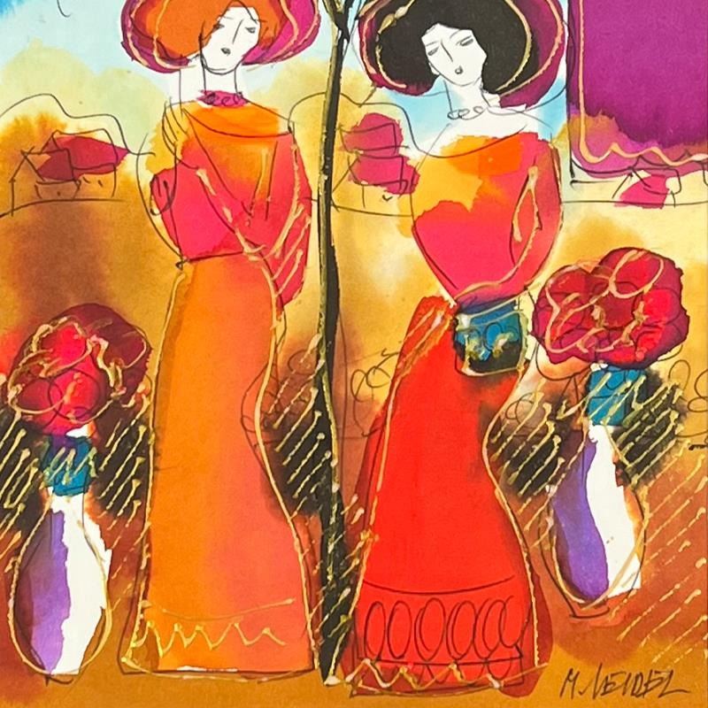 This is an original mixed media watercolor painting on paper by Moshe Leider, hand signed by the artist. This piece comes custom framed and includes a Letter of Authenticity. Measures approximately 14.5" x 13" (frame), 7.5" x 6" (image).