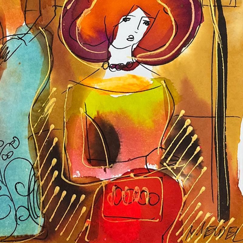 This is an original mixed media watercolor painting on paper by Moshe Leider. Hand signed by the artist, this piece comes custom framed and includes a Letter of Authenticity. Measures approximately 15" x 13.5" (frame), 8" x 6.5" (image).