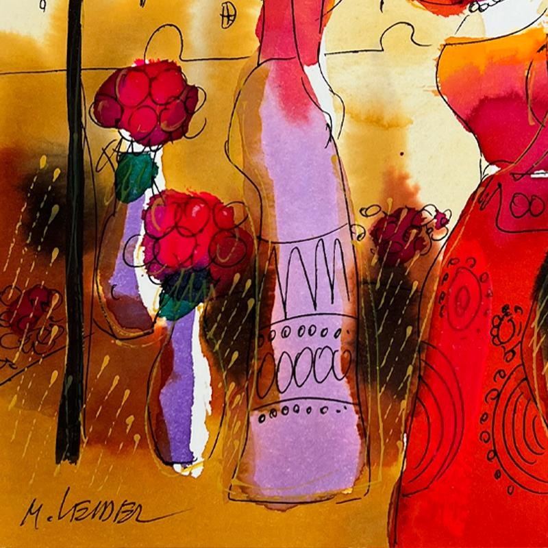 This is an original mixed media watercolor painting on paper by Moshe Leider. Hand signed by the artist, this piece comes custom framed and includes a Letter of Authenticity. Measures approximately 15" x 13.5" (frame), 8" x 6.5" (image).