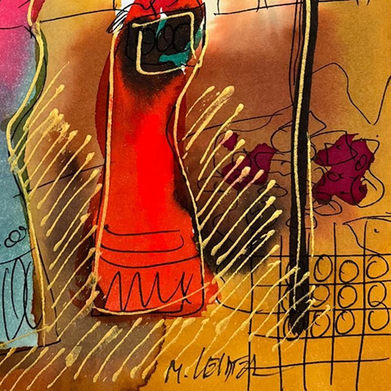 This is an original mixed media watercolor painting on paper by Moshe Leider. Hand signed by the artist, this piece comes custom framed and includes a Letter of Authenticity. Measures approximately 15" x 13.5" (frame), 8" x 6.5" (image).