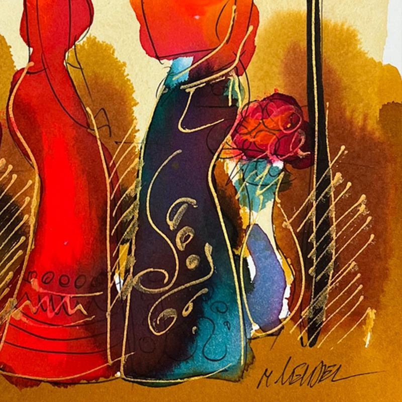 This is an original mixed media watercolor painting on paper by Moshe Leider. Hand signed by the artist, this piece comes custom framed and includes a Letter of Authenticity. Measures approximately 15" x 13.5" (frame), 8" x 6.5" (image).