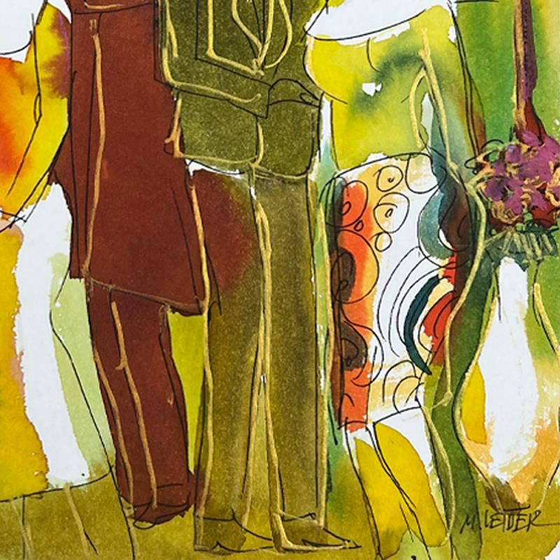 This is an original mixed media watercolor painting on paper by Moshe Leider. Hand signed by the artist, this piece comes custom framed and includes a Letter of Authenticity. Measures approximately 18.5" x 16" (frame), 11.5" x 8.5" (image).