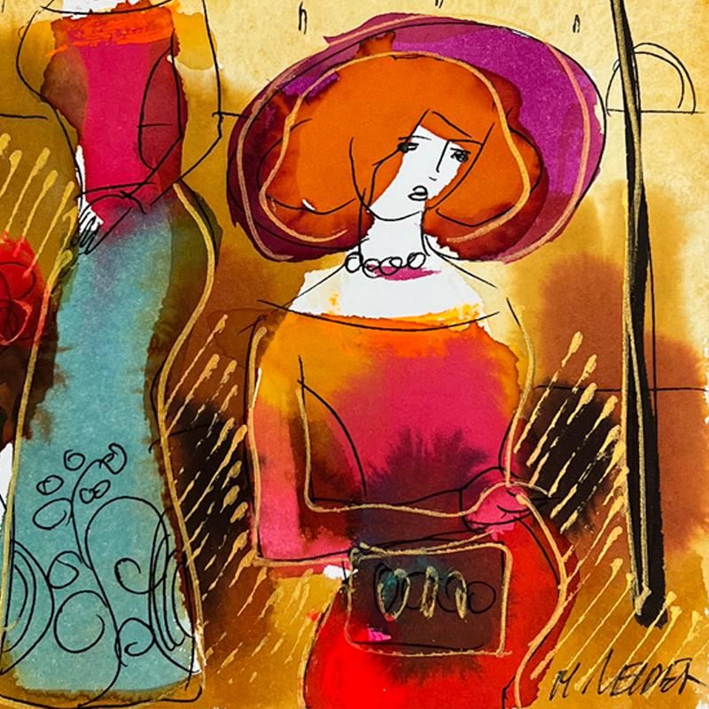 This is an original mixed media watercolor painting on paper by Moshe Leider. Hand signed by the artist, this piece comes custom framed and includes a Letter of Authenticity. Measures approximately 15" x 13.5" (frame), 8" x 6.5" (image).
