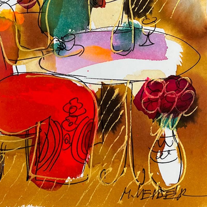 This is an original mixed media watercolor painting on paper by Moshe Leider. Hand signed by the artist, this piece comes custom framed and includes a Letter of Authenticity. Measures approximately 15" x 13.5" (frame), 8" x 6.5" (image).