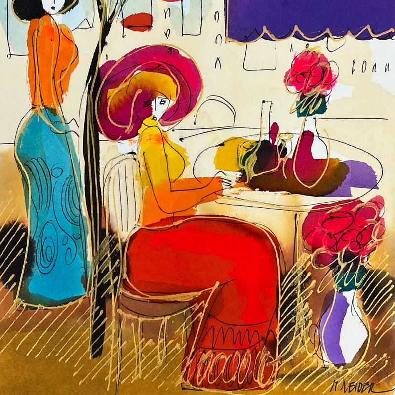 This is an original mixed media watercolor painting on paper by Moshe Leider. Hand signed by the artist, this piece comes custom framed and includes a Letter of Authenticity. Measures approximately 16" x 15" (frame), 9" x 8" (image).