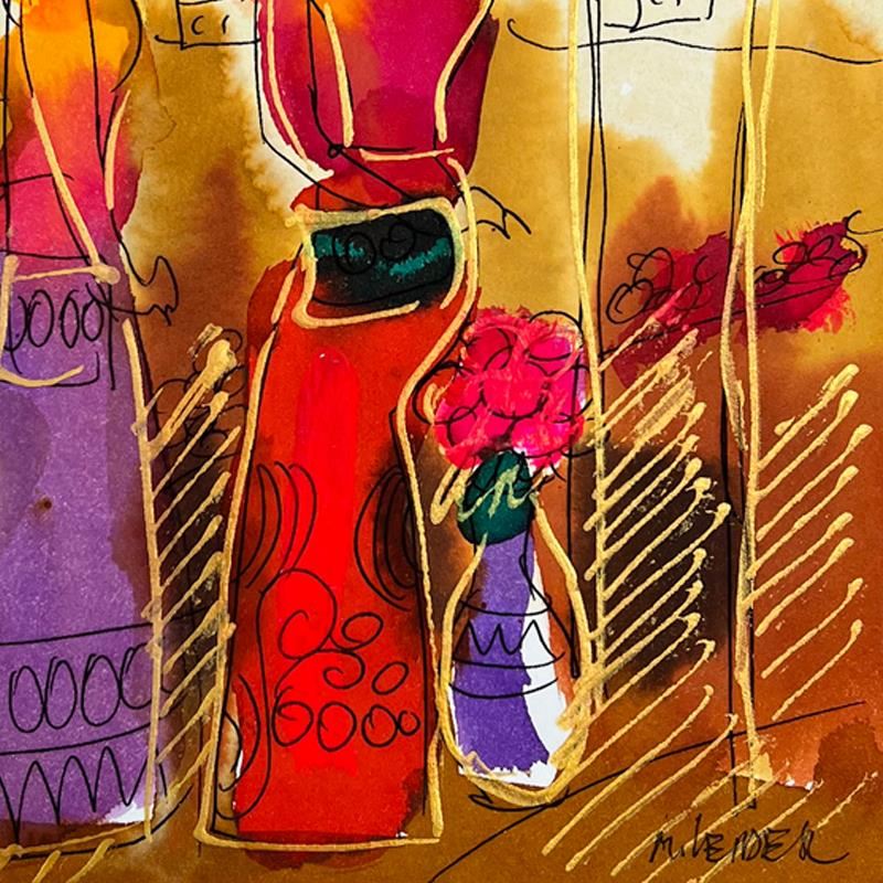This is an original mixed media watercolor painting on paper by Moshe Leider. Hand signed by the artist, this piece comes custom framed and includes a Letter of Authenticity. Measures approximately 15" x 13.5" (frame), 8" x 6.5" (image).