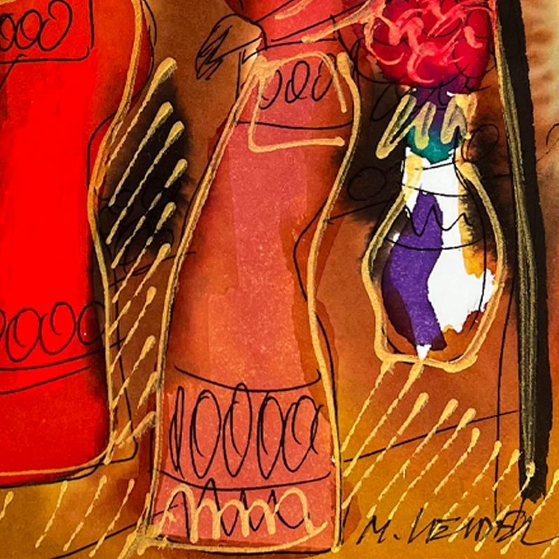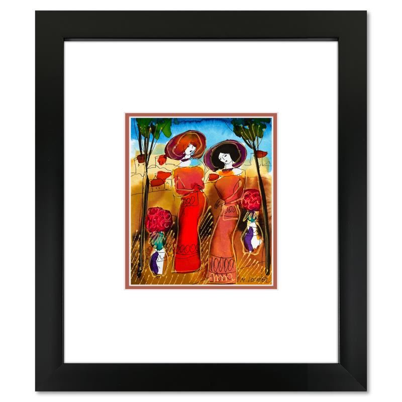 This is an original mixed media watercolor painting on paper by Moshe Leider. Hand signed by the artist, this piece comes custom framed and includes a Letter of Authenticity. Measures approximately 15" x 13.5" (frame), 8" x 6.5" (image).