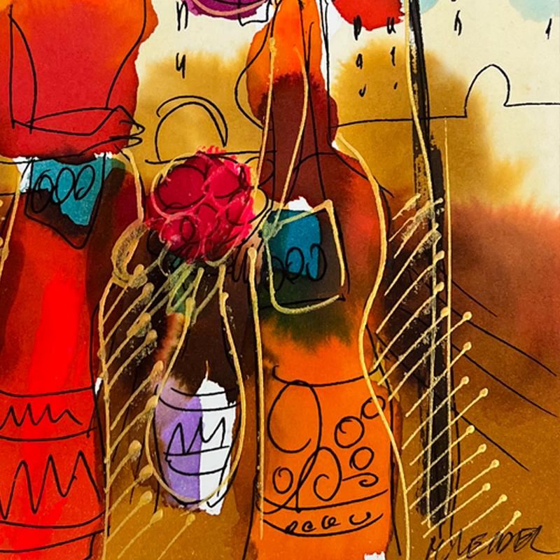 This is an original mixed media watercolor painting on paper by Moshe Leider. Hand signed by the artist, this piece comes custom framed and includes a Letter of Authenticity. Measures approximately 15" x 13.5" (frame), 8" x 6.5" (image).