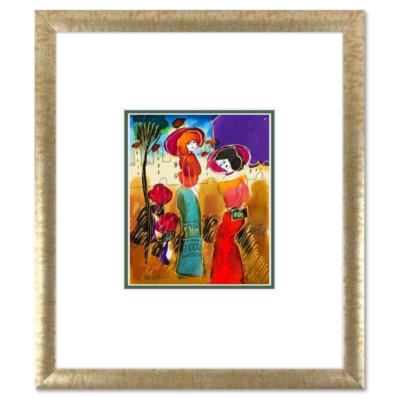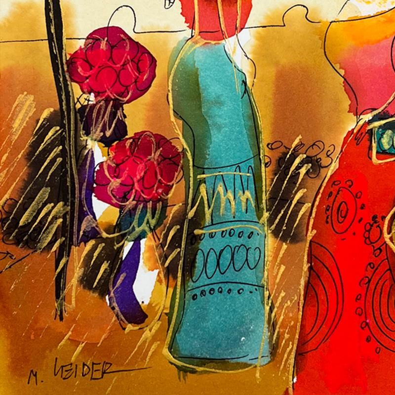 This is an original mixed media watercolor painting on paper by Moshe Leider. Hand signed by the artist, this piece comes custom framed and includes a Letter of Authenticity. Measures approximately 15" x 13.5" (frame), 8" x 6.5" (image).