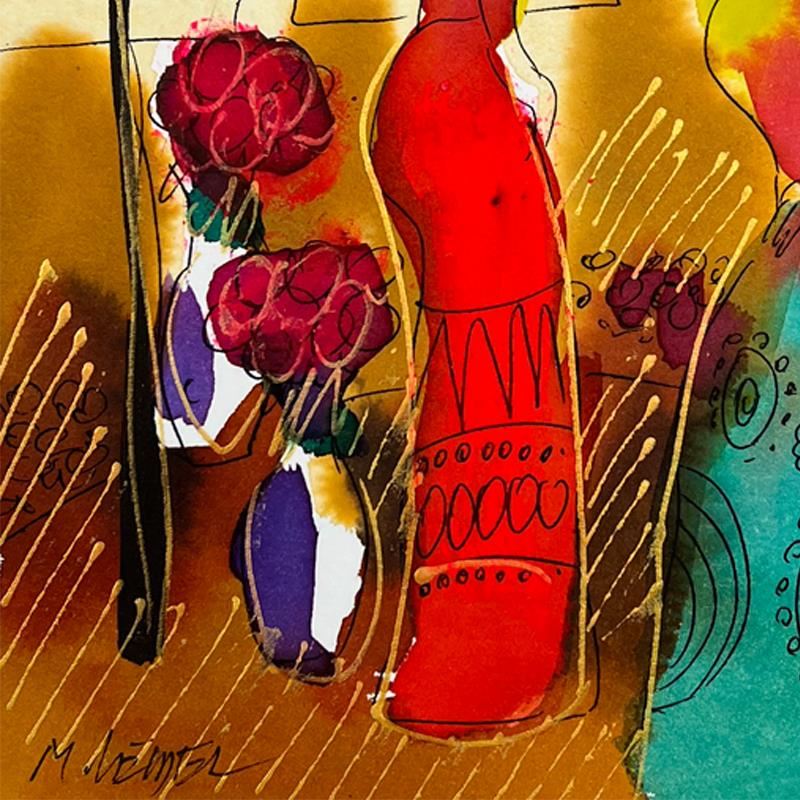 This is an original mixed media watercolor painting on paper by Moshe Leider. Hand signed by the artist, this piece comes custom framed and includes a Letter of Authenticity. Measures approximately 15" x 13.5" (frame), 8" x 6.5" (image).