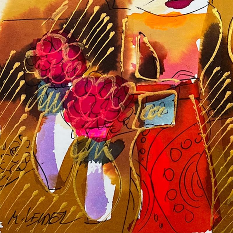 This is an original mixed media watercolor painting on paper by Moshe Leider. Hand signed by the artist, this piece comes custom framed and includes a Letter of Authenticity. Measures approximately 15" x 13.5" (frame), 8" x 6.5" (image).